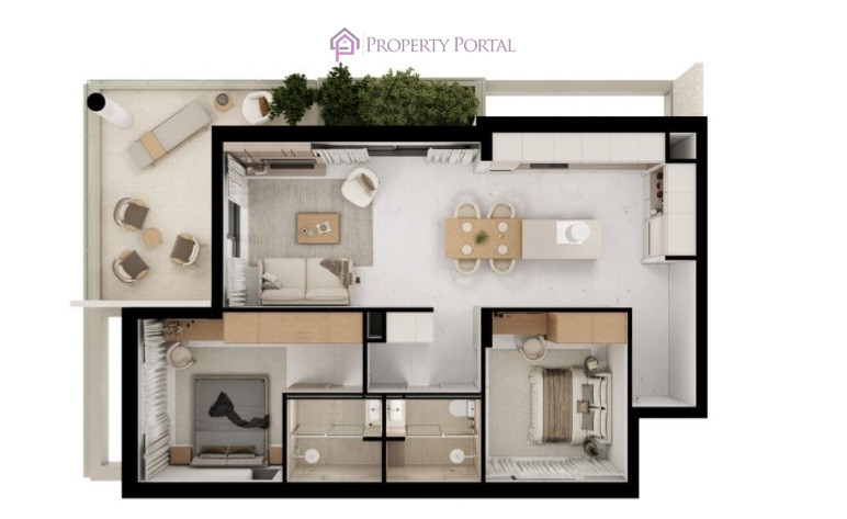 The project offers apartments with 1 to 3 bedrooms, designed according to their respective square meters. All apartments feature a bright living room, a functional kitchen, and a modern bathroom. In addition, the development includes a shared swimming pool and a children’s playground for all residents.
